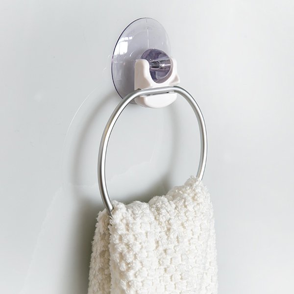 いろんなところに取り付けられる●シンプルなデザインで様々なところに使える吸盤式のタオル掛けリングです。