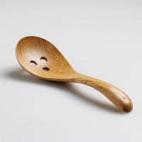 使い込むほどなじむ栗の木取り分けレンゲ・穴あき●自然な木の風合いは使いやすく、カフェメニューなどおしゃれな食卓にぴったりです。