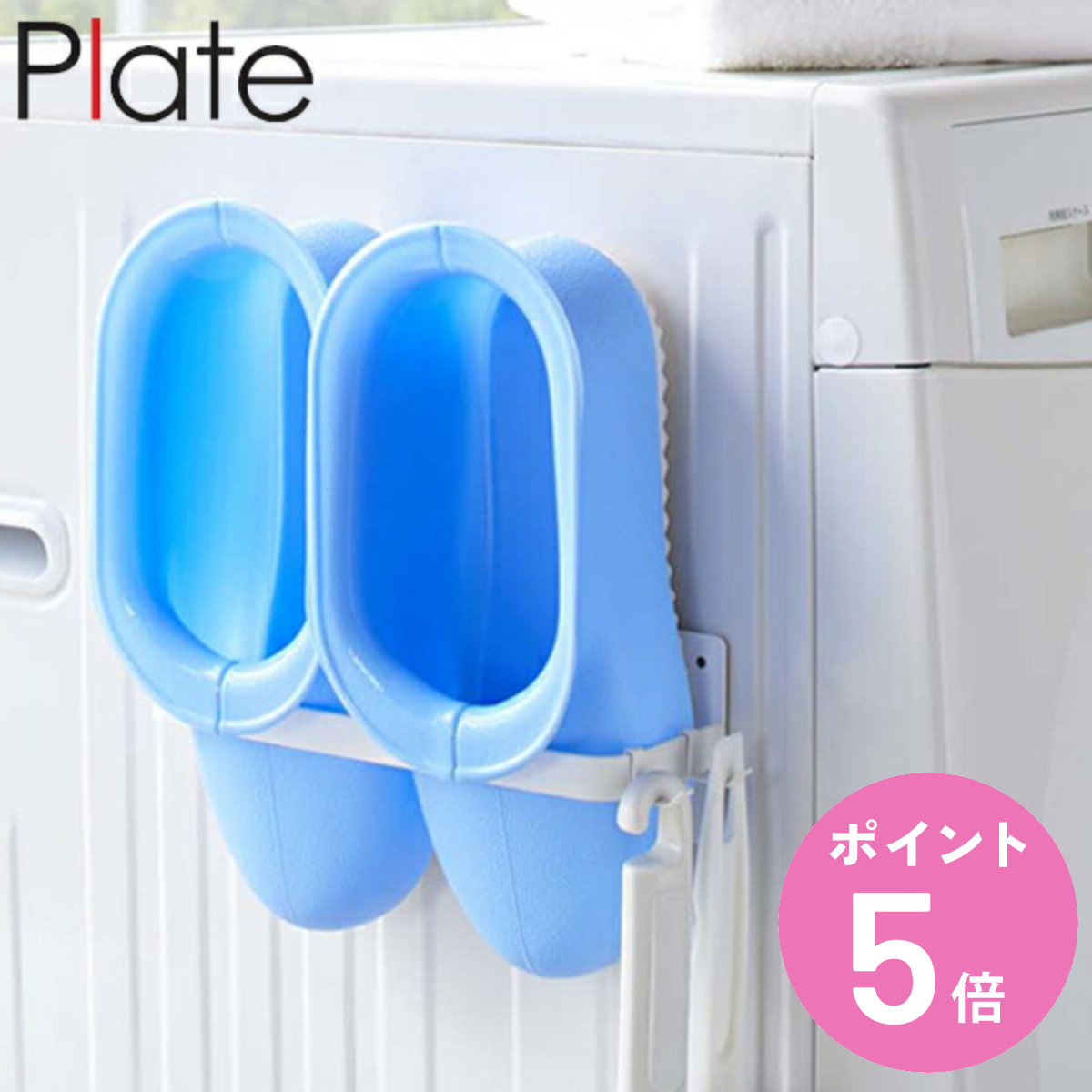 | フック付き 本体と同色のフック付きです。ハンドスプレーや靴ブラシなどを掛けられて便利です。 | 強力な磁力で安心 マグネットの磁力は強力なので、ブラシなどを掛けても安定しており、洗濯機からずれ落ちることなく快適にお使いいただけます。 |