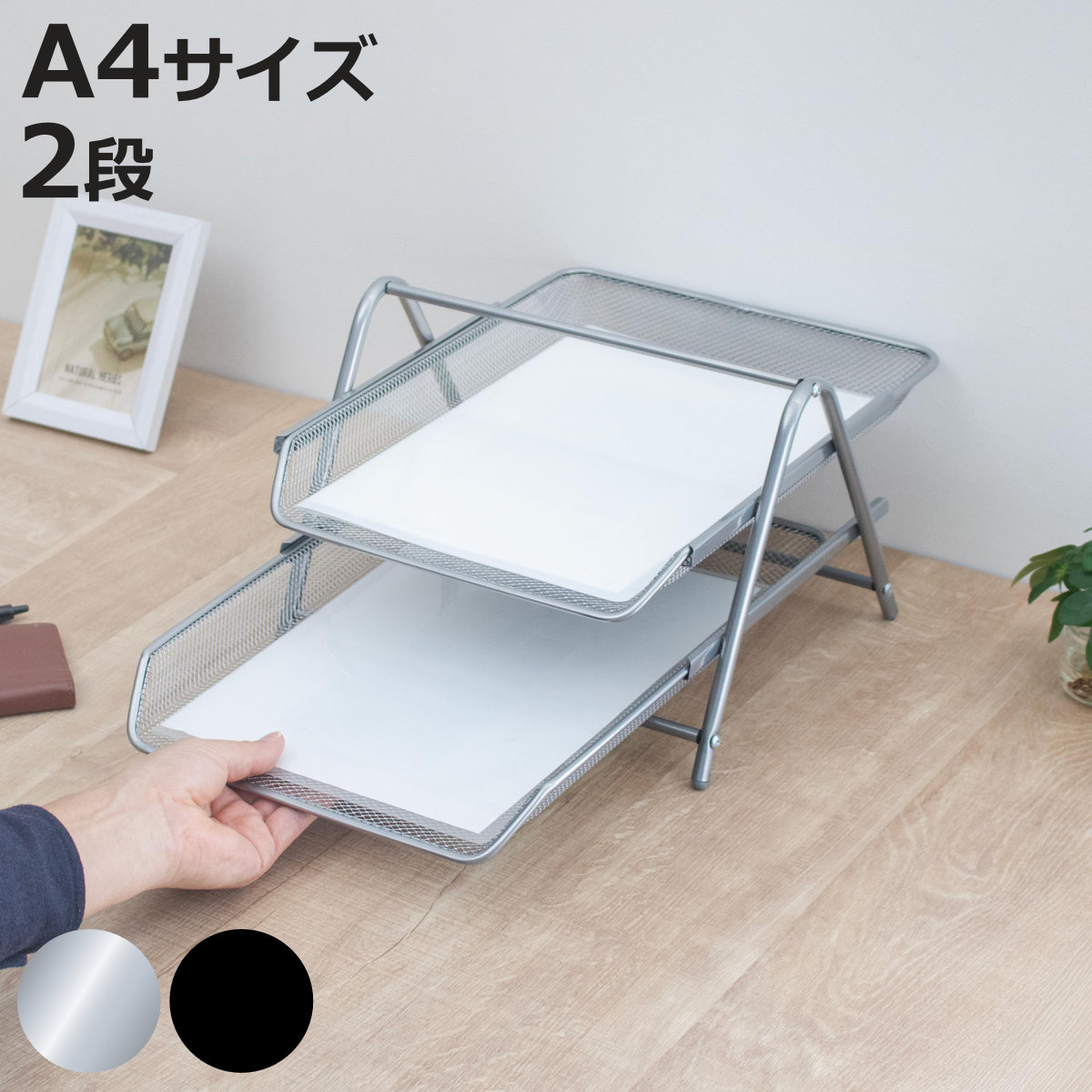 トレーはA4サイズのクリアファイルが収まるサイズ設計。縦に2段のトレーが付いているため、書類を種類ごとに分けて整理でき、デスク周りをすっきり整頓できます。