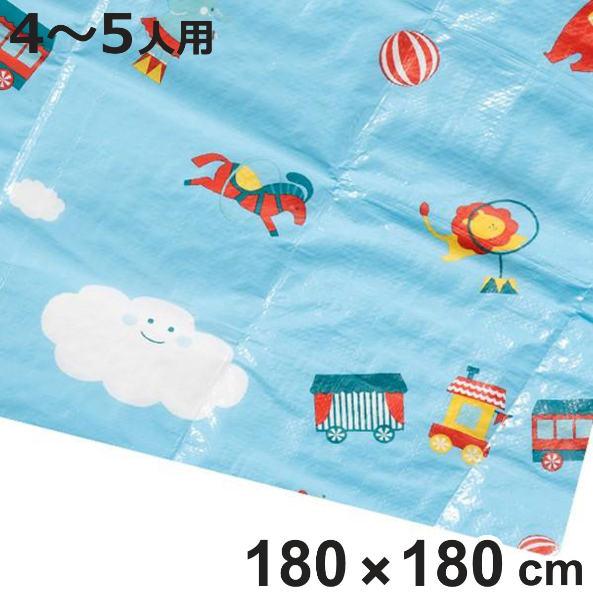 楽しいおでかけに♪にぎやかなサーカス柄のレジャーシート●ゆったり座れる4〜5人用のレジャーシートです。