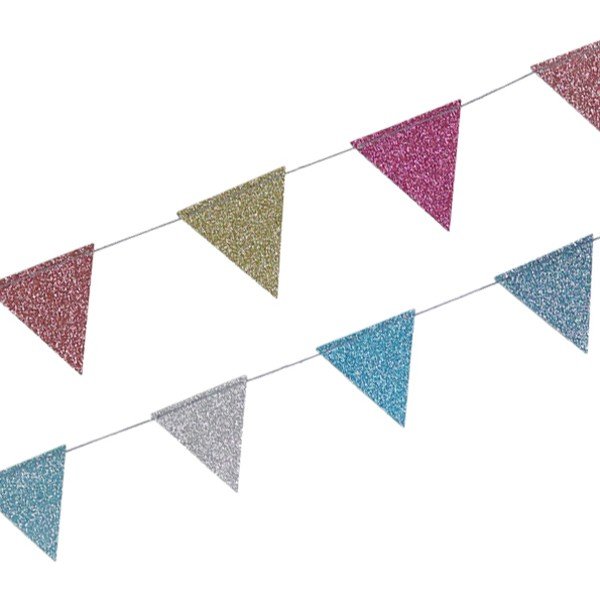 フラッグの形をしたラメ付きガーランド●フラッグの形をしたガーランドです。