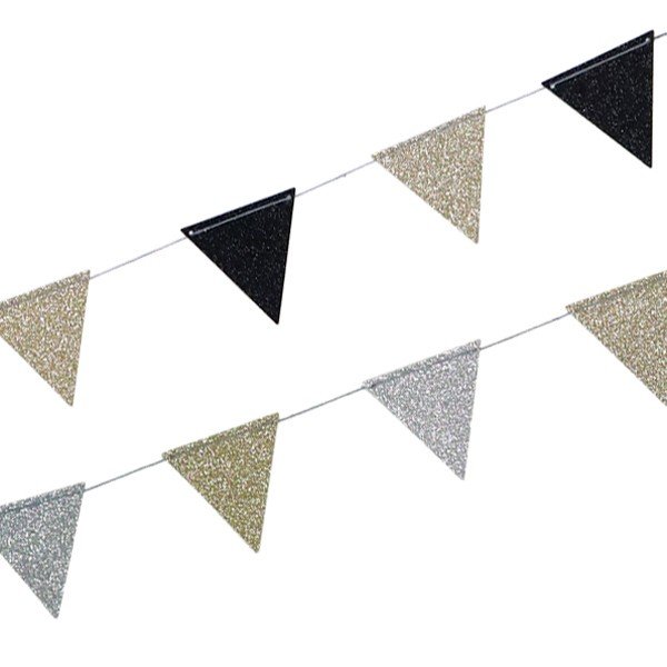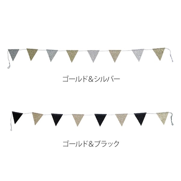 各2色カラーのフラッグゴールド&シルバー、ゴールド&ブラックの色がそれぞれ繰り返されたガーランドです。