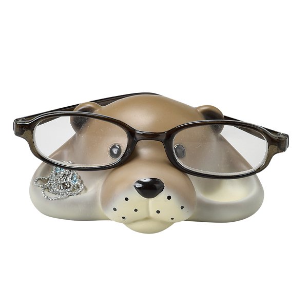 一つで二役カワウソにメガネをかけてメガネスタンドとして使えるだけではなく、頬の部分に小物も置けるメガネスタンドトレイです。