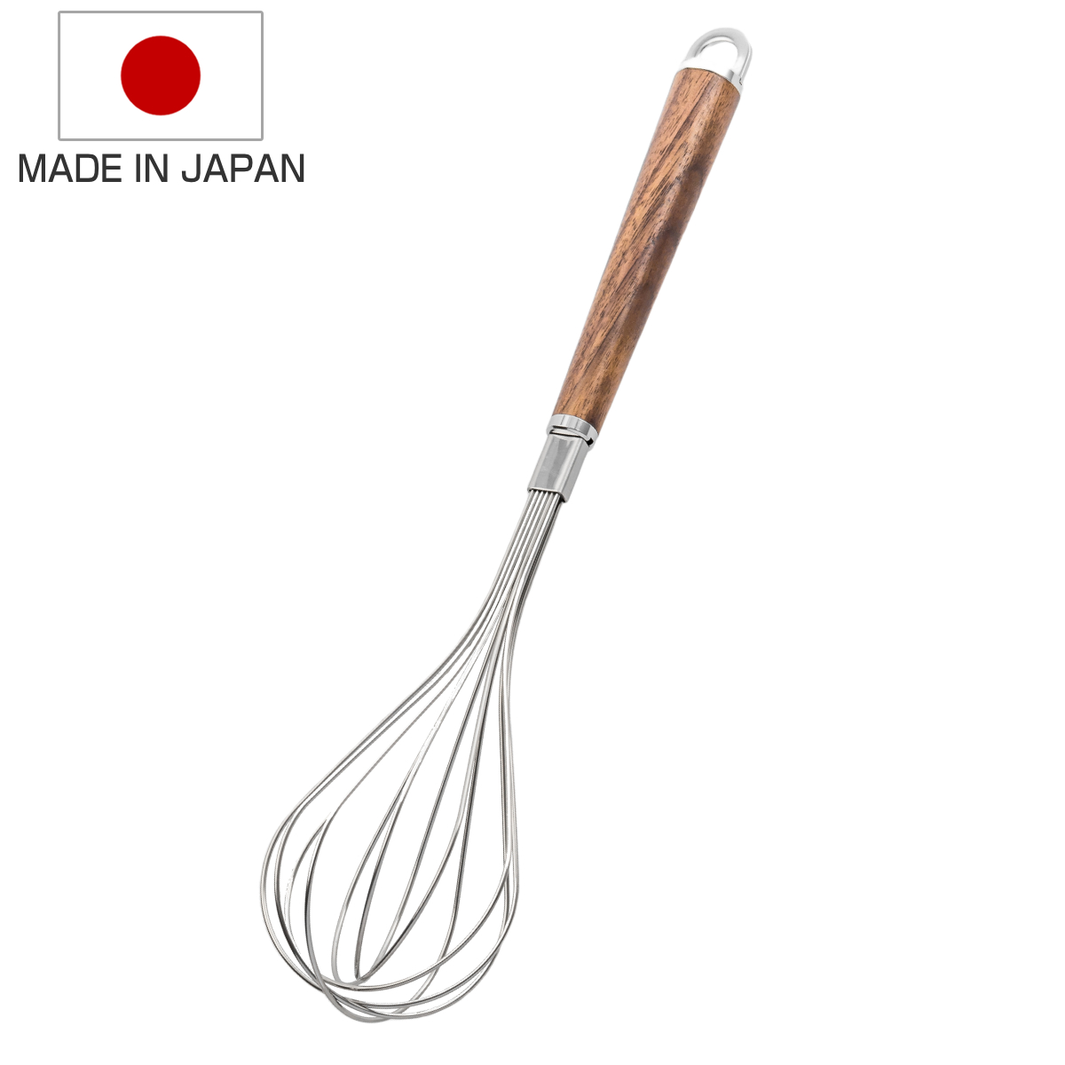 天然木と重厚感のある金属の輝き●日本製の確かな品質と機能性や作業性を追求した泡立て器です。