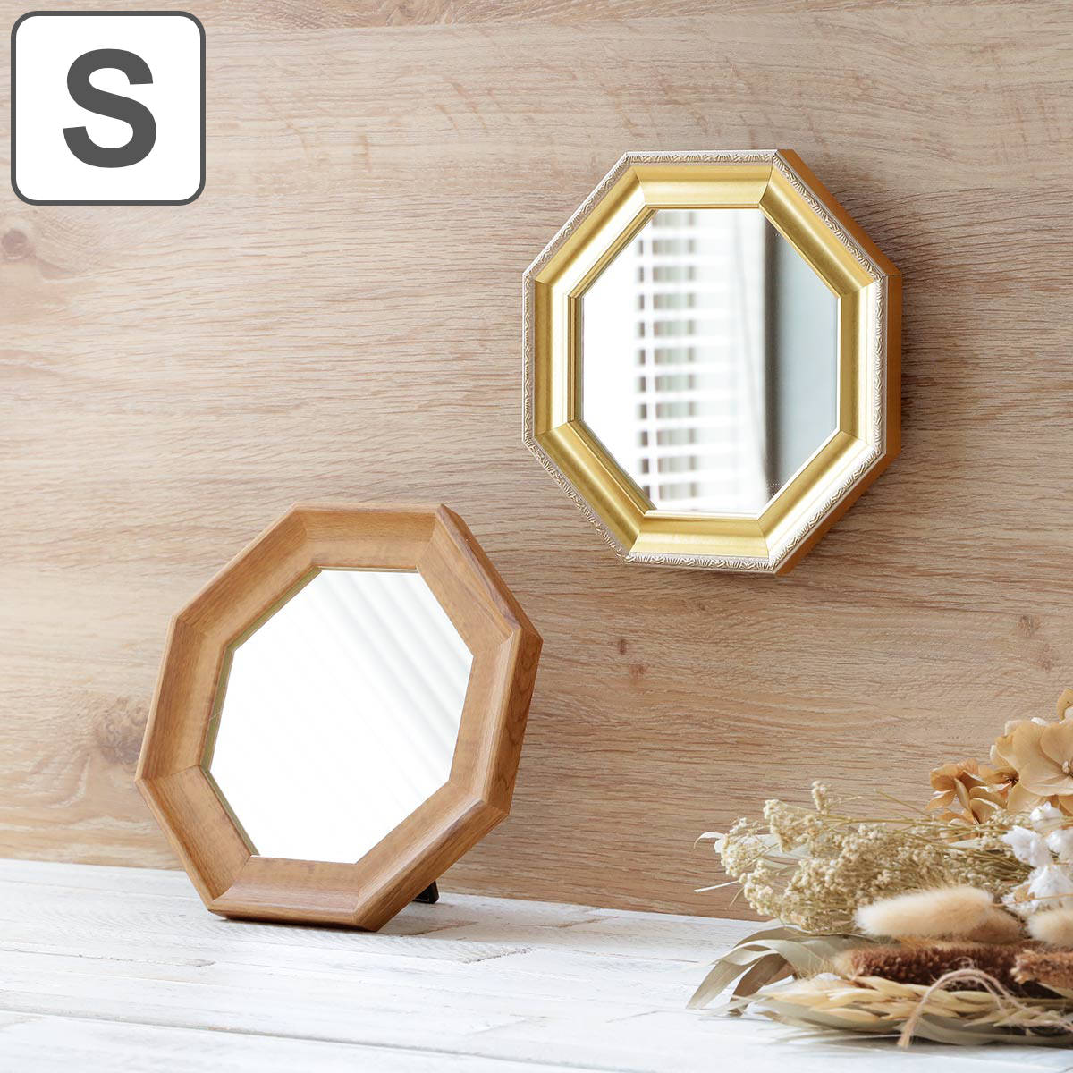 八角ミラー S ウォールミラー スタンドミラー 壁掛け 卓上ミラー ミラー 八角 鏡 かがみ ( メイクミラー 化粧 壁掛けミラー )