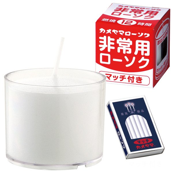 丈夫な容器とマッチ付きでいざという時にも安心暗闇でも安心の丈夫なカップ入りのローソクです。いつ起こるかわからない天災に備え、非常用持ち出し袋に入れておくのにピッタリです。便利なマッチ付きで、燃焼時間は約12時間です。