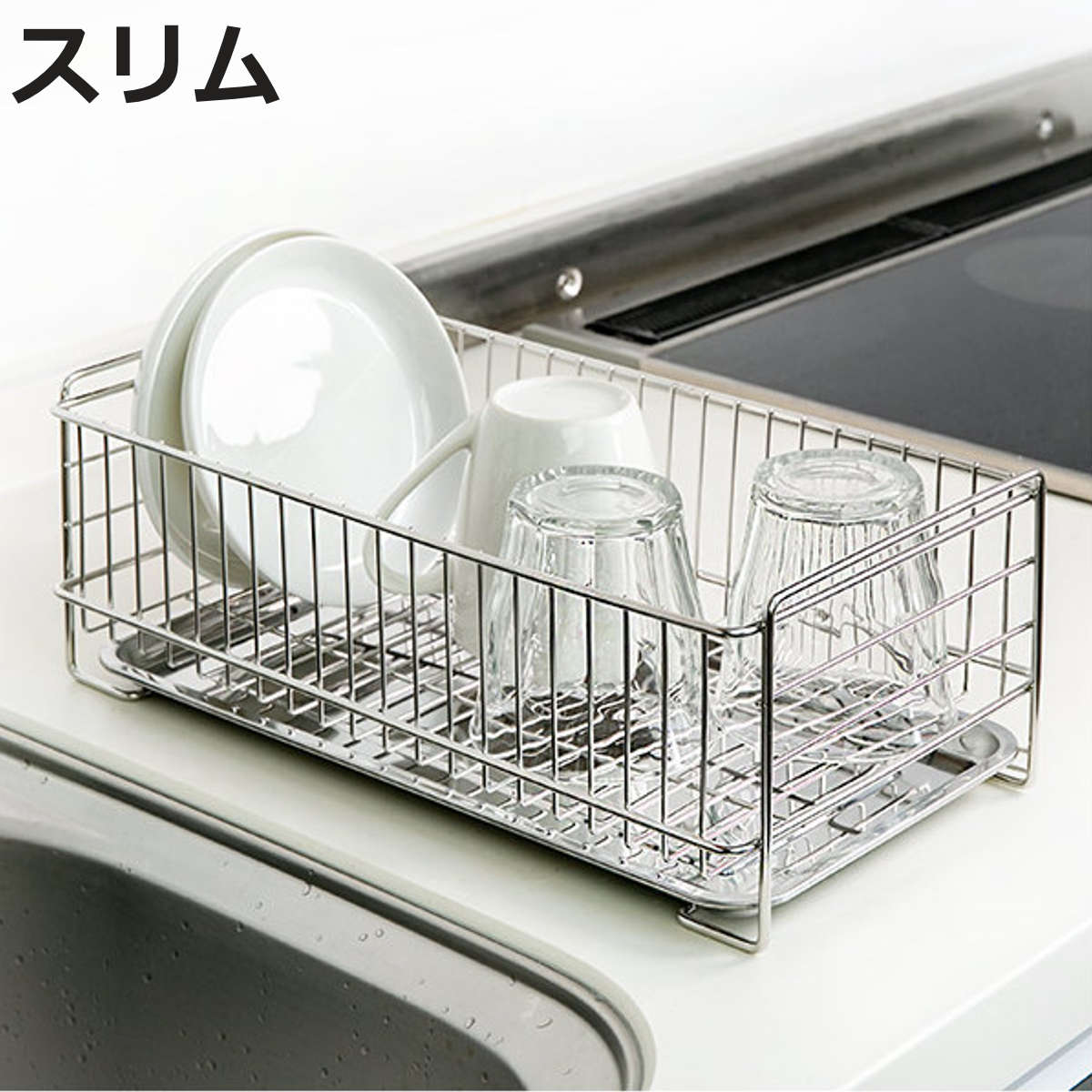 場所をとらないスリムサイズの水切りバスケットシンプルで無駄のないデザインの水切りバスケットは、どんなキッチンとも相性抜群。使い勝手がよく、お皿やグラスもまとめてスッキリ入れられます。スリムタイプなので、幅が20cmあればシンク横のスペースにも置けます。