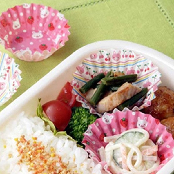 お弁当に入れるだけでデコ弁に変身ウサギとイチゴ、サクランボのキュートなデザインのおかずカップです。お弁当に入れるだけで簡単に可愛いお弁当に仕上がります。