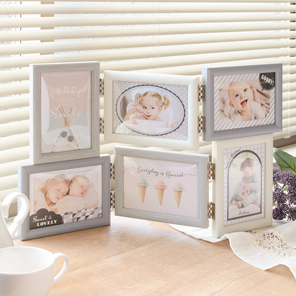 約8.9×12.7cm(L判)の写真を6枚飾る事が出来ます。リズミカルなレイアウトでインテリアとしても優秀です。撮りっぱなしの写真達をお洒落に飾って、インテリアを楽しみませんか?