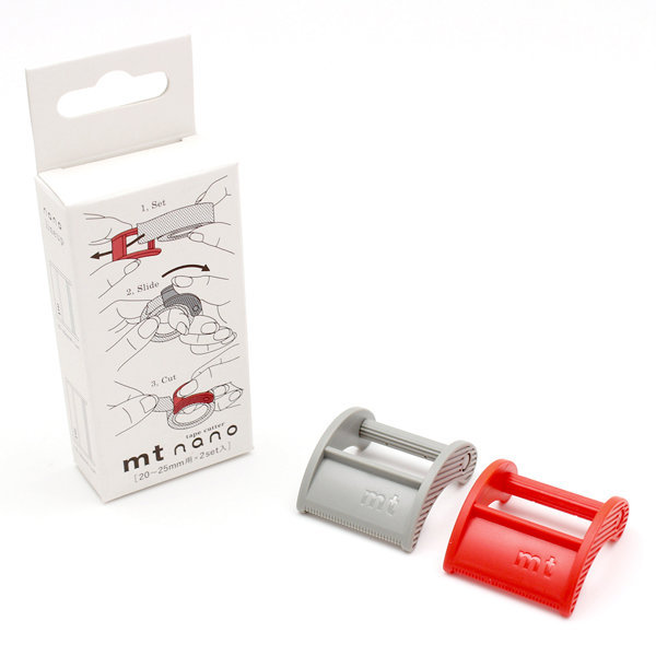 mtマスキングテープ20〜25mm用×2個setグレー、レッドの2色2個セットです。20〜25mm幅のマスキングテープに対応します。2個入りなので、違うマスキングテープを使いたい時、装着し直す手間が省けて便利です。