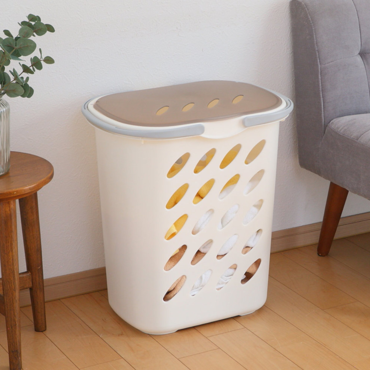 ●洗濯物もたっぷり入る蓋付き大型バスケットです。