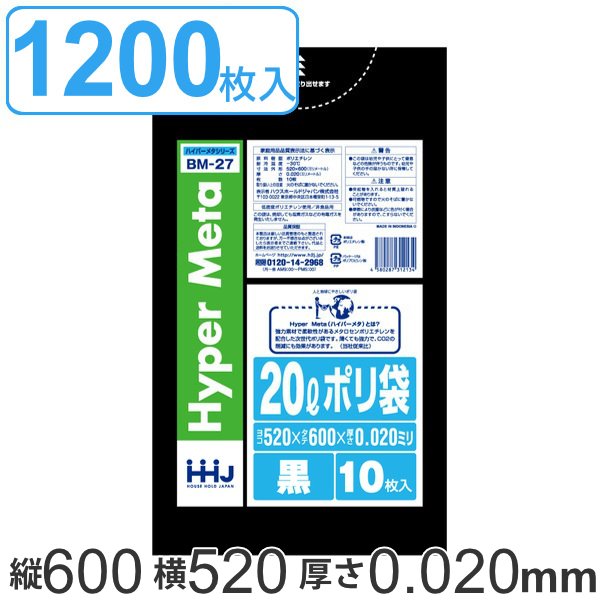 ポリ袋 20L 52x60cm 10枚入り 黒 ( ゴミ袋 20 リットル 厚さ 0.02mm メタロセン 強化剤 つるつる ゴミ ごみ ごみ袋 小分け )