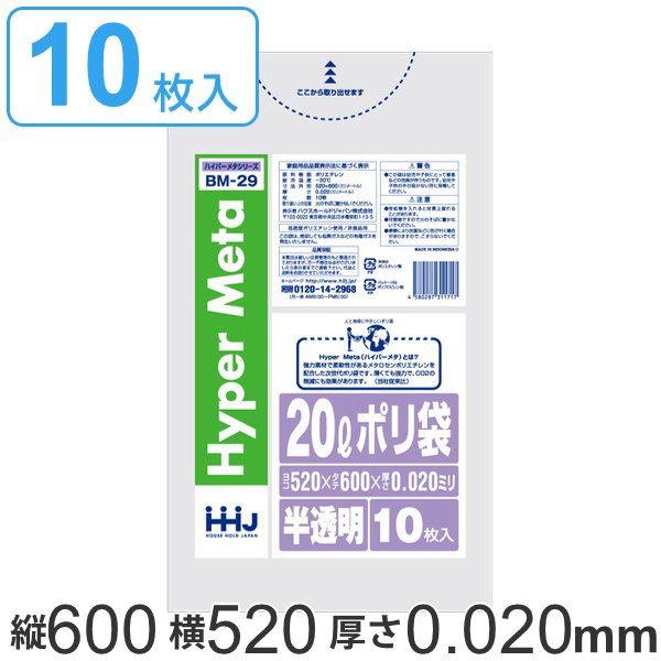 ポリ袋 20L 52x60cm 10枚入り 半透明 ( ゴミ袋 20 リットル 厚さ 0.02mm メタロセン 強化剤 つるつる ゴミ ごみ ごみ袋 小分け )
