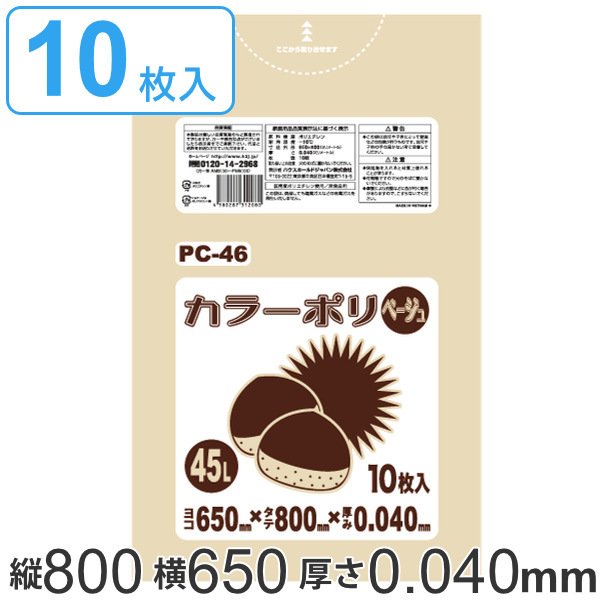 ゴミ袋 45L 80x65cm 厚さ 0.04mm 10枚入り ベージュ ( ポリ袋 45 リットル カラーポリ袋 つるつる 学校 工作 ゴミ ごみ ごみ袋 )
