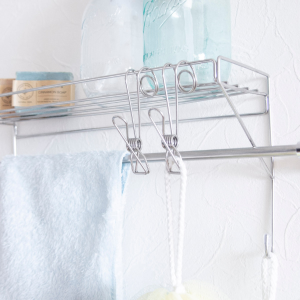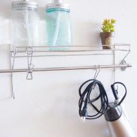 タオルバーの上にそのまま乗せて収納スペースにできるステンレスシェルフです。タオルバーにタオルを掛けたまま使え、ボトルやお風呂小物をまとめて置くのに便利で見た目もすっきりとします。バスルームだけでなく洗面所やトイレでの使用もおすすめです。