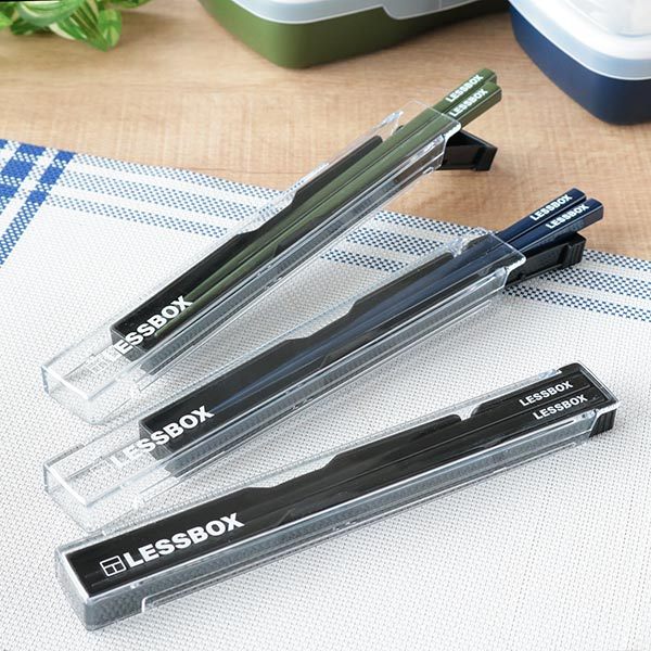 お箸がさっと取り出しやすい構造です。お箸は19.5cmと長めで男性の方でも使いやすい長さです。持ち運び時にカタカタ鳴らない箸ストッパー付きです。食洗機対応しています。シリーズ商品のお弁当箱とセットでお使いいただけます。 【商品詳細】サイズ/約幅20.5×奥行2.8×高さ1.4cm 箸:19.5cm 内容量/1個(箸、箸箱) 材質/箸箱蓋、箸:AS樹脂 箸箱本体:ポリプロピレン 種類/ブラック、カーキ、ネイビー 生産国/日本製 食器洗い乾燥機/使用可能 《食洗機OK はし 弁当 お弁当 スライド式 折れ曲げ式 持ち運び お弁当用 携帯用 クリア 透明 日本製 本体スライド 折れ曲げ式 カタカタ防止 19.5センチ 約19cm 約19センチ 約20cm 約20センチ ランチグッズ お弁当グッズ お弁当用箸 携帯用箸 携帯カトラリー 弁当箱 マイ箸 my箸 はし ケース付き お箸ケース レディース 女子 女の子 女性 女 メンズ 男子 男の子 男性 男 大人 高校生 小学生 中学生 子供 子ども こども 通勤 通学 給食 遠足 ピクニック アウトドア レジャー 行楽 お出かけ LESSBOX ブラック 黒色 カーキ ネイビー 紺色 シンプル 無地 ロゴデザイン LH5950 LH6035》