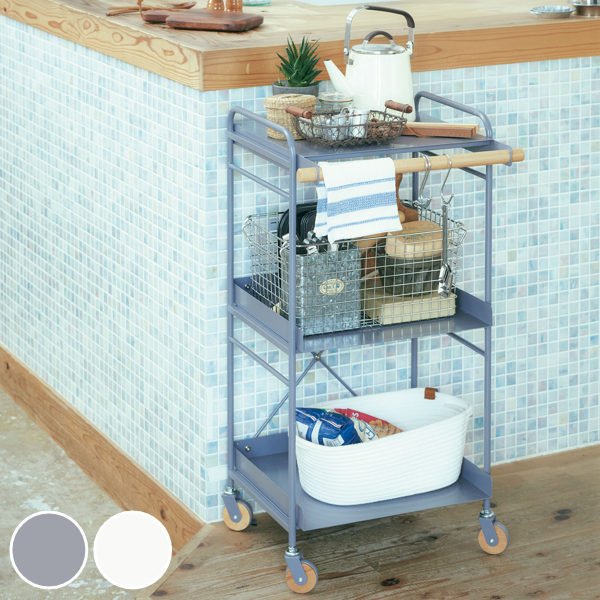 キッチンワゴン 3段 北欧風 スチールフレーム LIV 約幅46cm ( キッチン収納 ラック ワゴン 収納ラック 収納 スチールラック サイドワゴン )