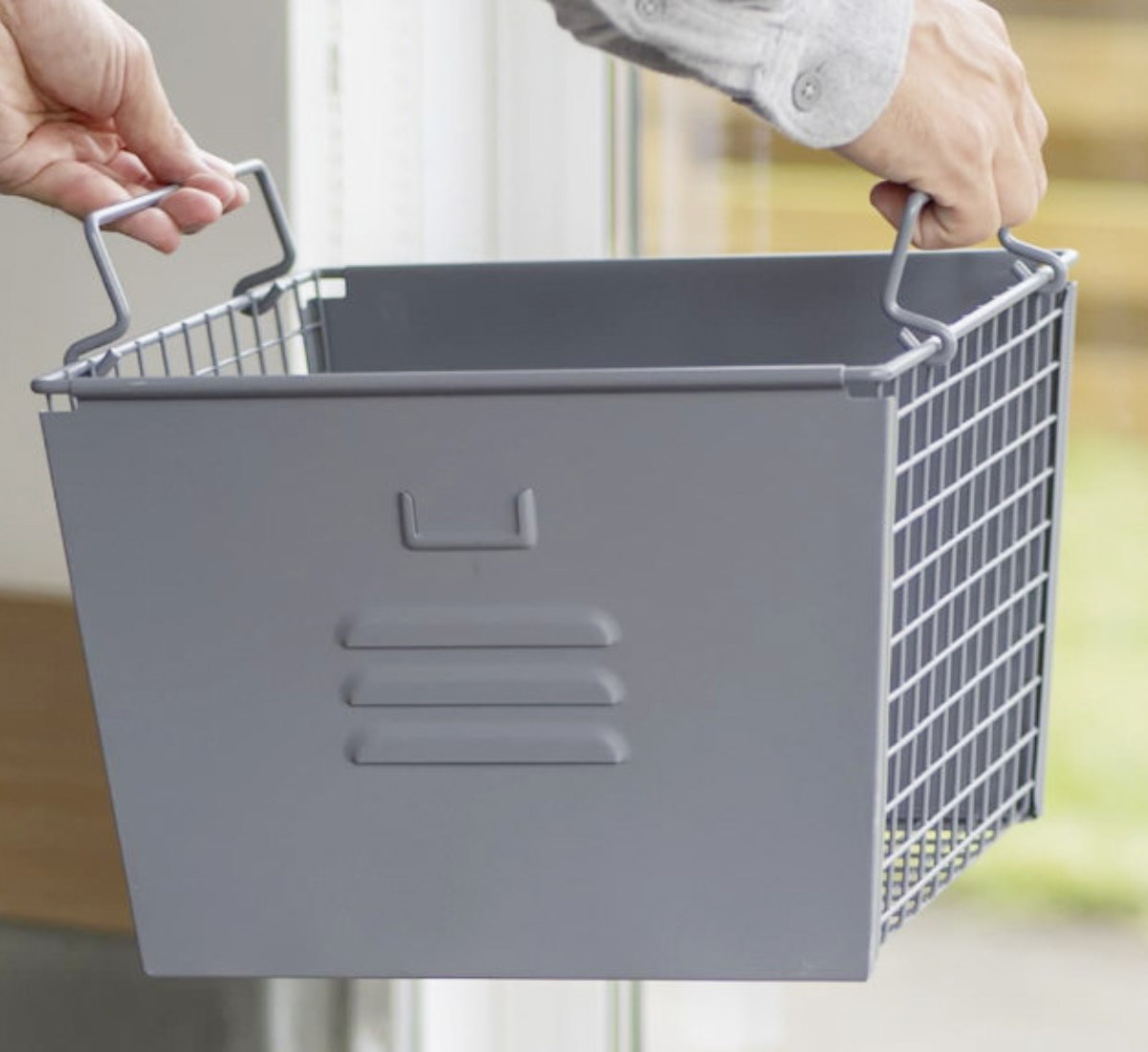 サイドと底面は、格子状の金属メッシュで、通気性が良く中身も見えやすいデザインです。