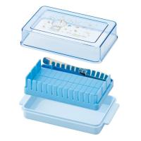 使い方はとっても簡単【1】中子をケース本体から出し、包装を取ったバターを乗せ、カッティングガイドを利用して必要な量を切り分けます。