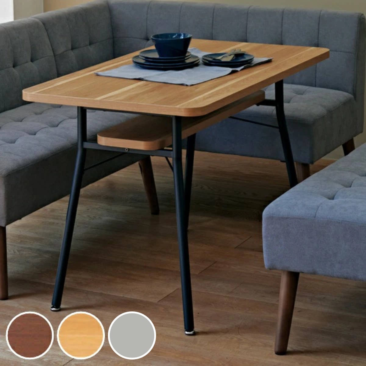 ダイニングテーブル 幅110cm ミルド ダイニング テーブル 木目調 スチール脚 棚 ラック 収納 ( 机 食卓テーブル 食卓 100 2人掛け 4人掛け ソファテーブル )