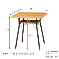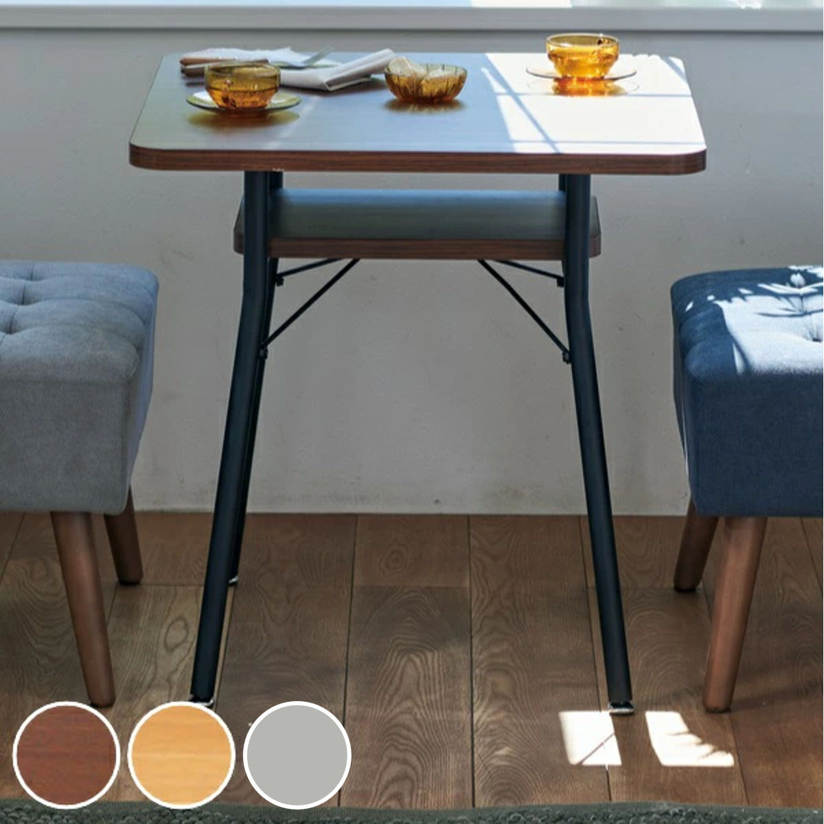 ダイニングテーブル 幅65cm ミルド ダイニング テーブル 木目調 スチール脚 棚 ラック 収納 ( 机 食卓 2人掛け ソファテーブル カフェテーブル 正方形 )