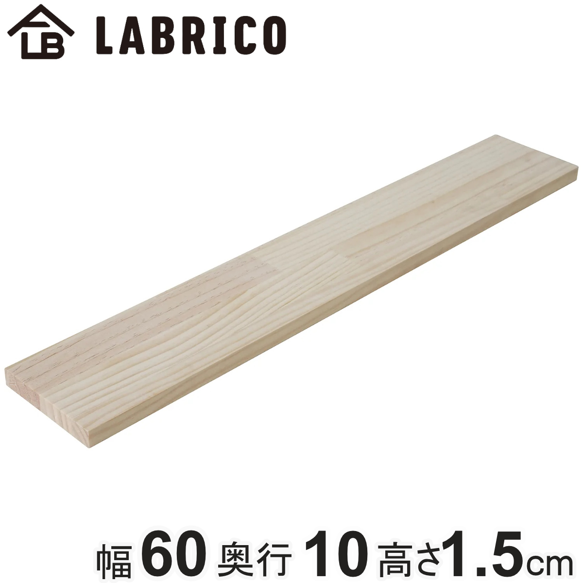 パイン集成材棚板 無塗装 幅60×奥行10×高さ1.5cmLABRICOシリーズに使用可能な、反りや曲がりの少ないパイン材を使った棚板木材です。木材は手触りが滑らかで、視覚的にも触覚的にも素朴で温かみのある印象を与えます。無塗装タイプなので、ワックスやペンキを使って自分好みの色味にアレンジすることができます。
