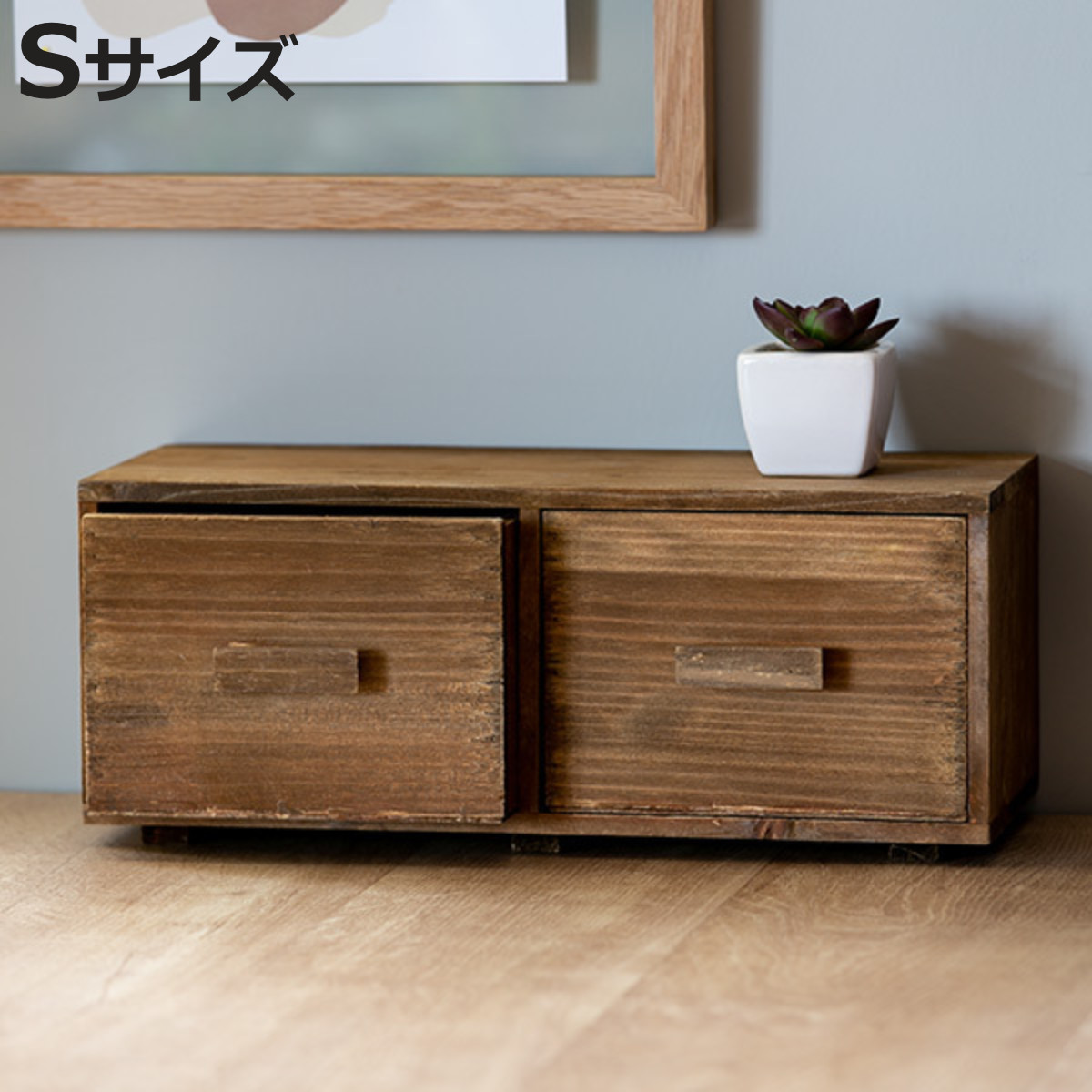 天然木で作られた、ぬくもりのあるウッドチェスト【Sサイズ】天然木にあえてヴィンテージ加工を施し、味わい深く、そして温かみのあるウッドチェストに仕上げています。天然木の美しい木目や、使い込むことで味が出てくる色合いや風合いを楽しむことができます。