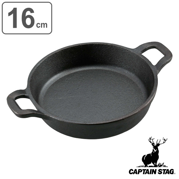 アウトドア スキレット 16cm 両手 調理器具 キャプテンスタッグ CAPTAIN STAG ( 鋳鉄製 フライパン スキレットパン グリルパン 鉄スキ 鉄鍋 )