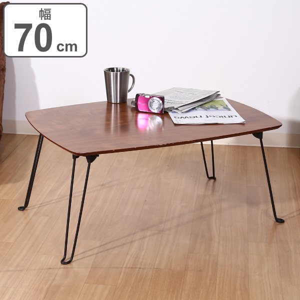 コンパクトに収納できる木目調の折れ脚テーブル●美しい木目調の折りたたみテーブルです。