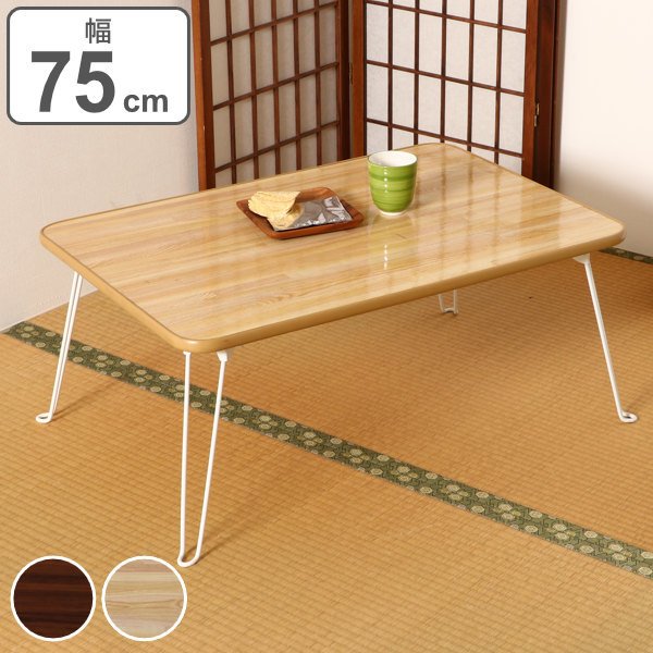 シンプルで実用的な木目調テーブルセンターテーブルやダイニングテーブルとして使い勝手の良い幅75cmのローテーブルです。天板は木目調のシンプルなデザインなので、和室・洋室を問わずお使いいただけます。
