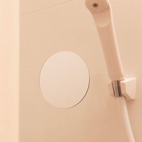 お部屋に馴染むシンプル形状 粘着テープ式アクリルミラー「ピタッとミラー」 正円玄関やトイレの壁、バスルームなど、鏡が欲しい場所にピタッと簡単に貼り付けることができます。また、落としても割れにくい安心・軽量仕様です。アクリル製のミラーなので、もしものときに落下しても安心です。