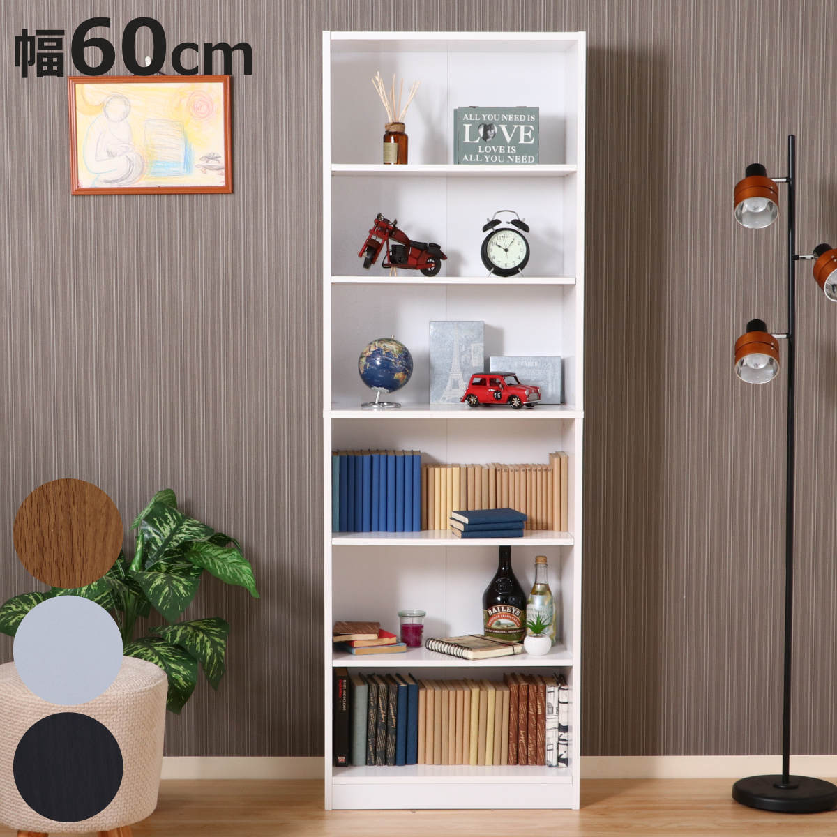 書棚 幅60cm 6段 大容量 可動棚4枚 多目的ラック ( 本棚 オープンラック シェルフ コミックラック 薄型 大容量 収納棚 省スペース )