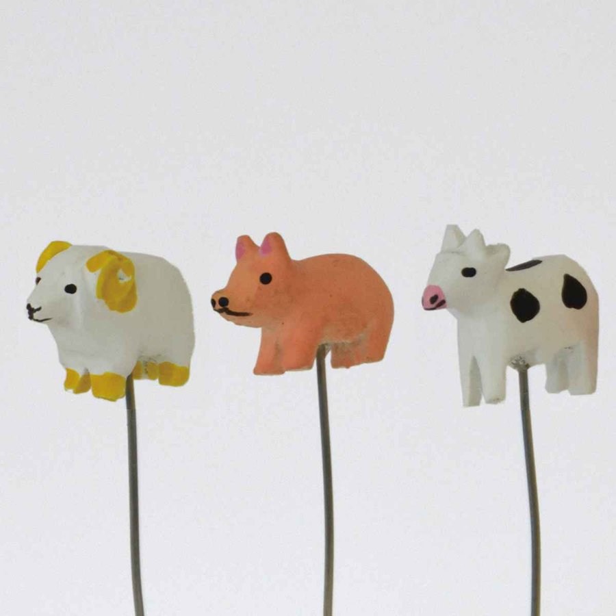 プランターに手軽にアクセントを付けられる●ヒツジ、ブタ、ウシのピックが1本ずつ入った、ミニピック3本セットです。