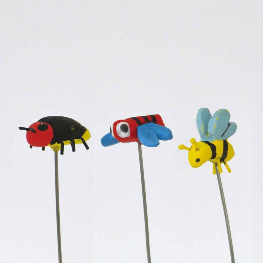 プランターに手軽にアクセントを付けられる●ホタル、トンボ、ハチのピックが1本ずつ入った、ミニピック3本セットです。