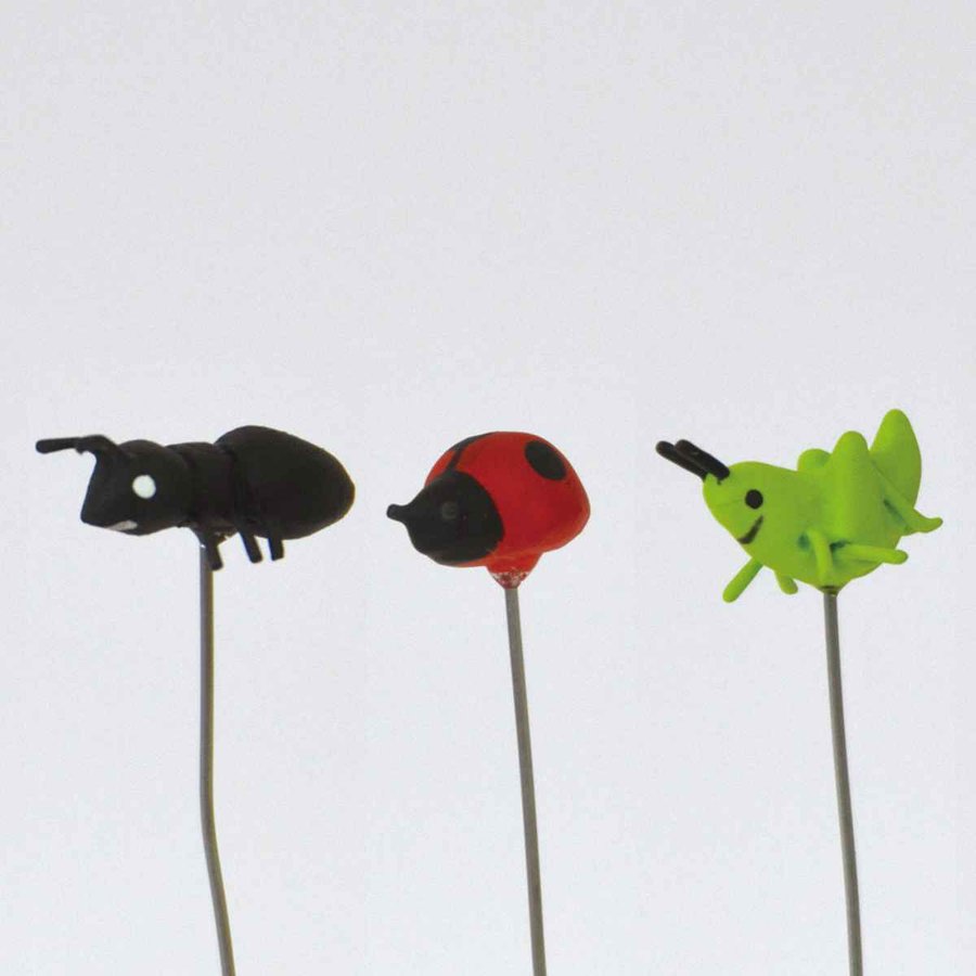 プランターに手軽にアクセントを付けられる●アリ、テントウムシ、バッタのピックが1本ずつ入った、ミニピック3本セットです。