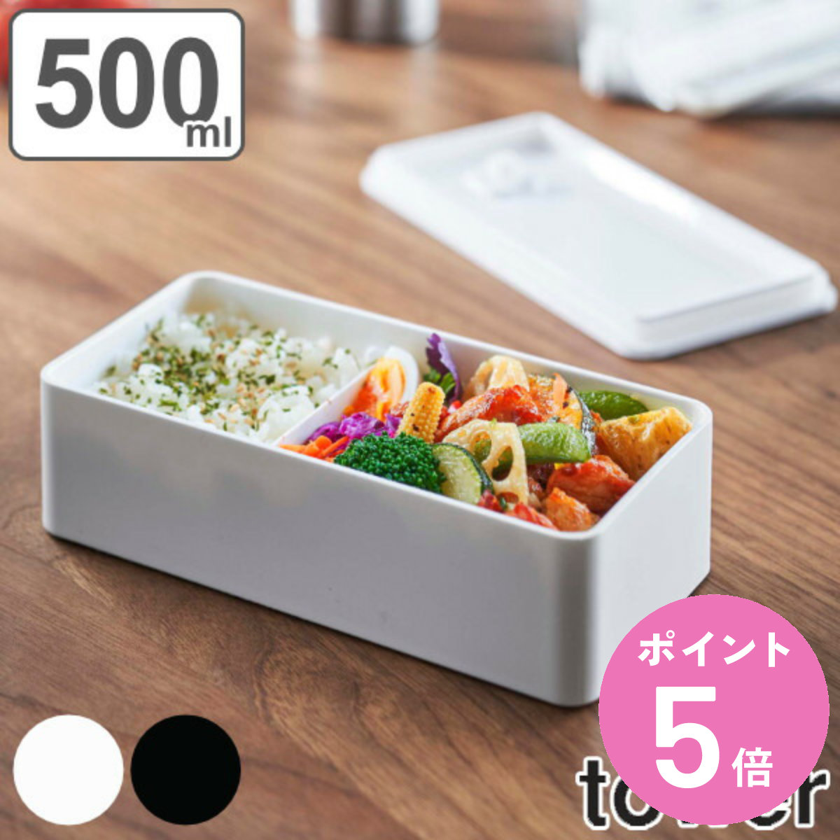 山崎実業 tower バルブ付き密閉ランチボックス タワー ワイド ( 4903208054713 弁当箱 レンジ対応 食洗機対応 一段 保存容器 レンジOK 食洗機OK 仕切り付き )