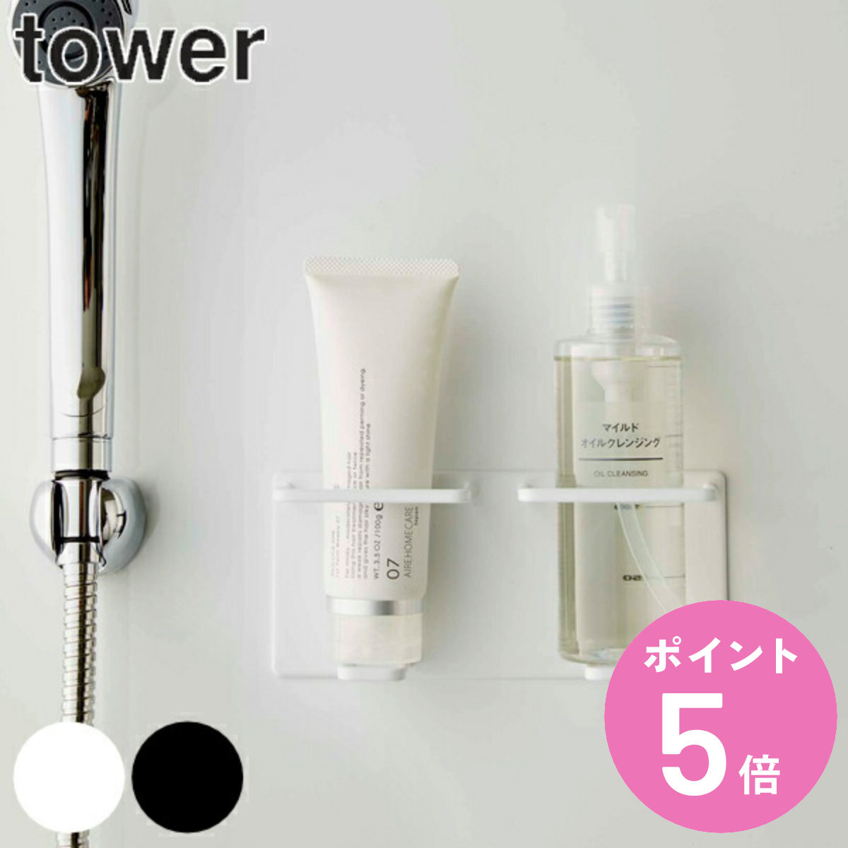 山崎実業 tower マグネットバスルームチューブ&ボトルホルダー タワー M ダブル ( 4903208055062 チューブ ディスペンサー ホルダー ボトル ラック 磁石 )