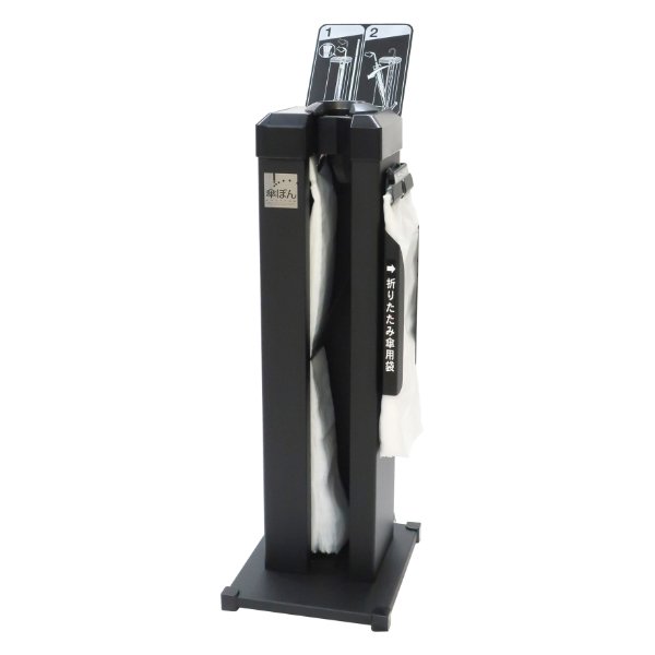 スリムでシンプルなデザインの傘袋スタンド●シックなブラックのカラーリングで、どんな場所にも合う傘袋スタンド(傘ぽん)です。