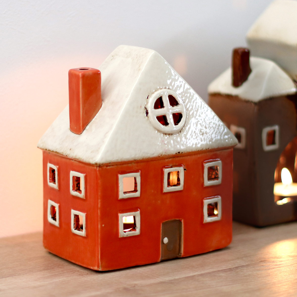 キャンドルハウスは全てひとつひとつ職人さんの手作りです。釉薬による色ムラや色の濃淡が出ることがございますが、商品ごとの表情の違いや風合いをお楽しみいただけると幸いです。