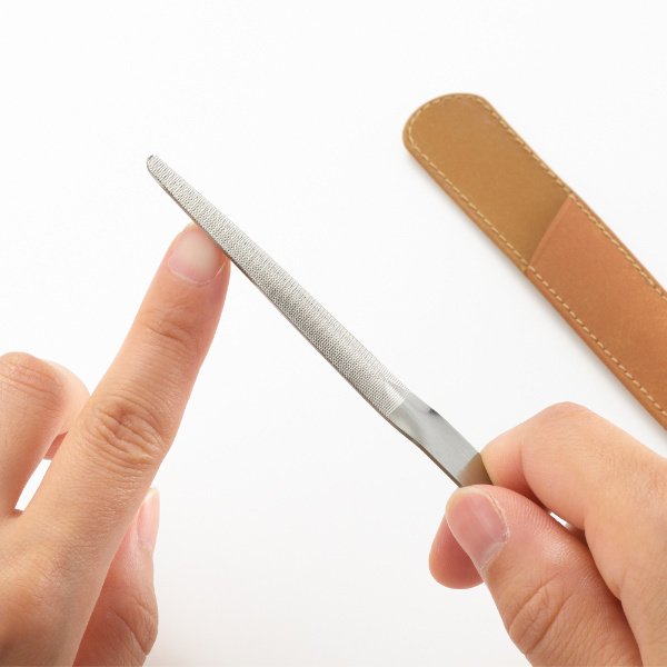 爪の曲線に合わせたカーブ爪の曲線に合わせたカーブに目立てたやすりです。熟練の目立て職人の手作業によって生み出される一本です。ヤスリをかけた爪は、とても滑らかな仕上がりです。