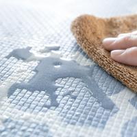 水や汚れをしっかりガードし、飛び散った汚れもひと拭きでキレイになります。洗濯をする必要がなく、床掃除のついでにマットもお掃除できるのでとってもお手軽です。
