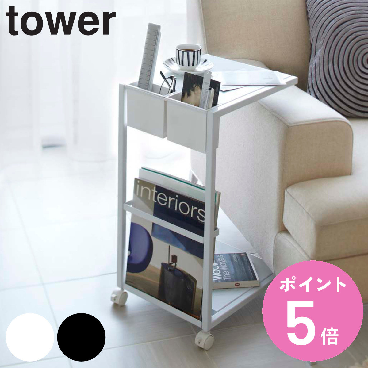 特典付き 山崎実業 tower サイドテーブルワゴン タワー ( 4903208071550 サイドテーブル ソファテーブル コの字 コンパクト 省スペース 収納 ポケット付き )