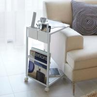 ソファやベッドサイドに置くだけで便利なサイドテーブルに、使いやすい機能をプラスしたのがこのサイドテーブルワゴンです。機能的でありながらコンパクトかつ省スペースで使えるなど、快適機能を詰め込んだ1台となっています。
