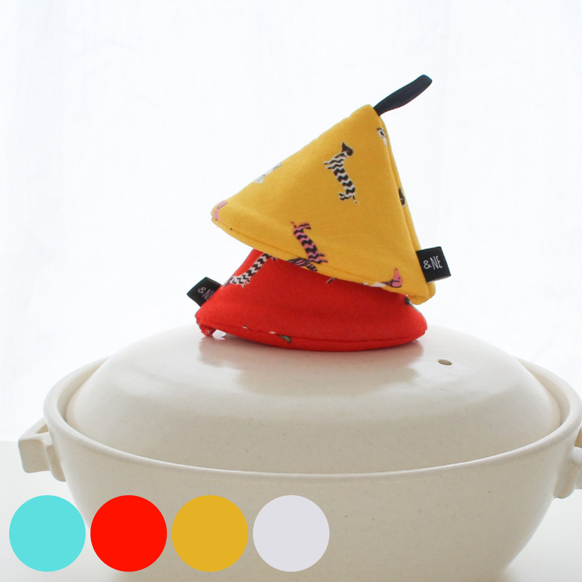 ころんとした三角形の可愛い鍋つかみころんとした三角形の鍋つかみなので鍋の蓋や取っ手にピッタリはまり、可愛いだけじゃなく機能性も抜群です。熱いお鍋でも安心して使用することができます。