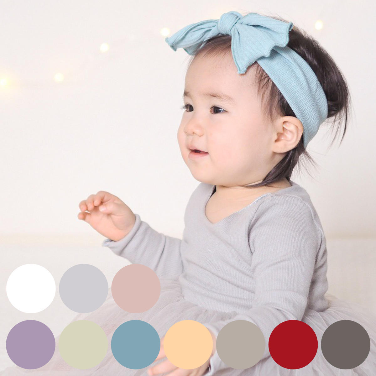 全色揃えたくなるヘアバンドいつものお洋服に合わせるだけでよりキュートな印象に。コーディネートに合わせやすいので、普段使いからお出かけまで様々なシチュエーションでお使いいただけます。まだ髪の毛が短い赤ちゃんも身に着けると可愛らしさがますますアップ。赤ちゃんにピッタリのお気に入りの色を見つけてください。