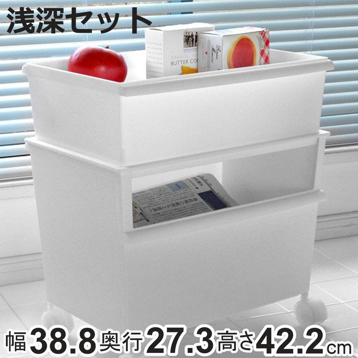 | 内容量 | ワイド深型1個、ワイド浅型1個 付属品:フタ1枚、キャスター4個 |
