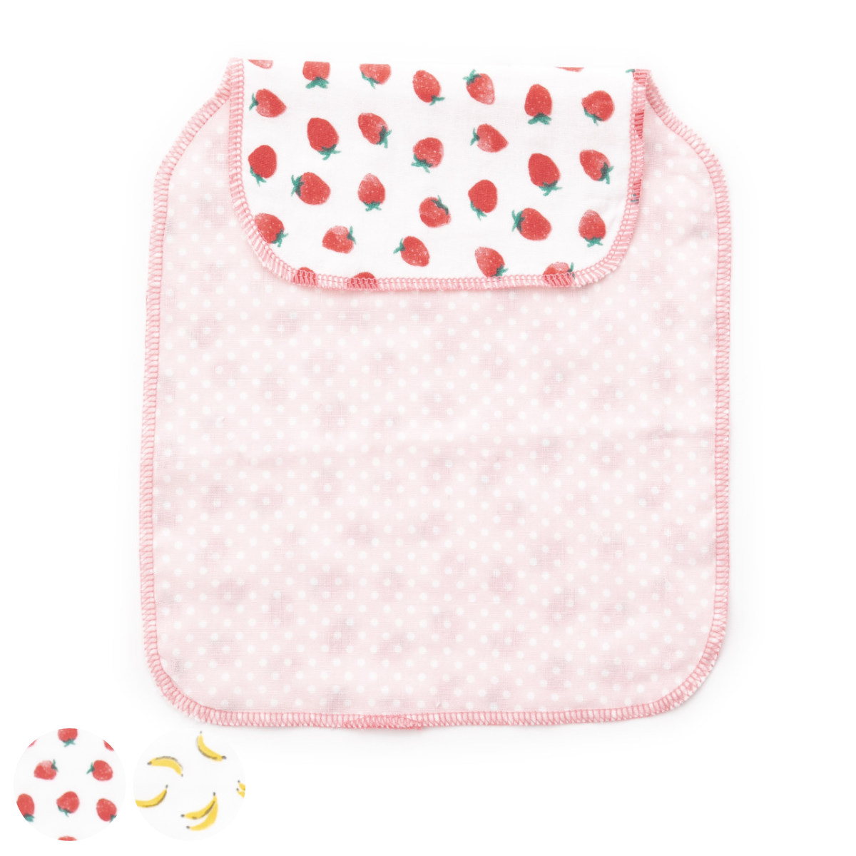 フルーツ柄ガーゼ生地の汗取りシート●赤ちゃんのあせも対策などにおすすめのフルーツ柄の汗取りシートです。