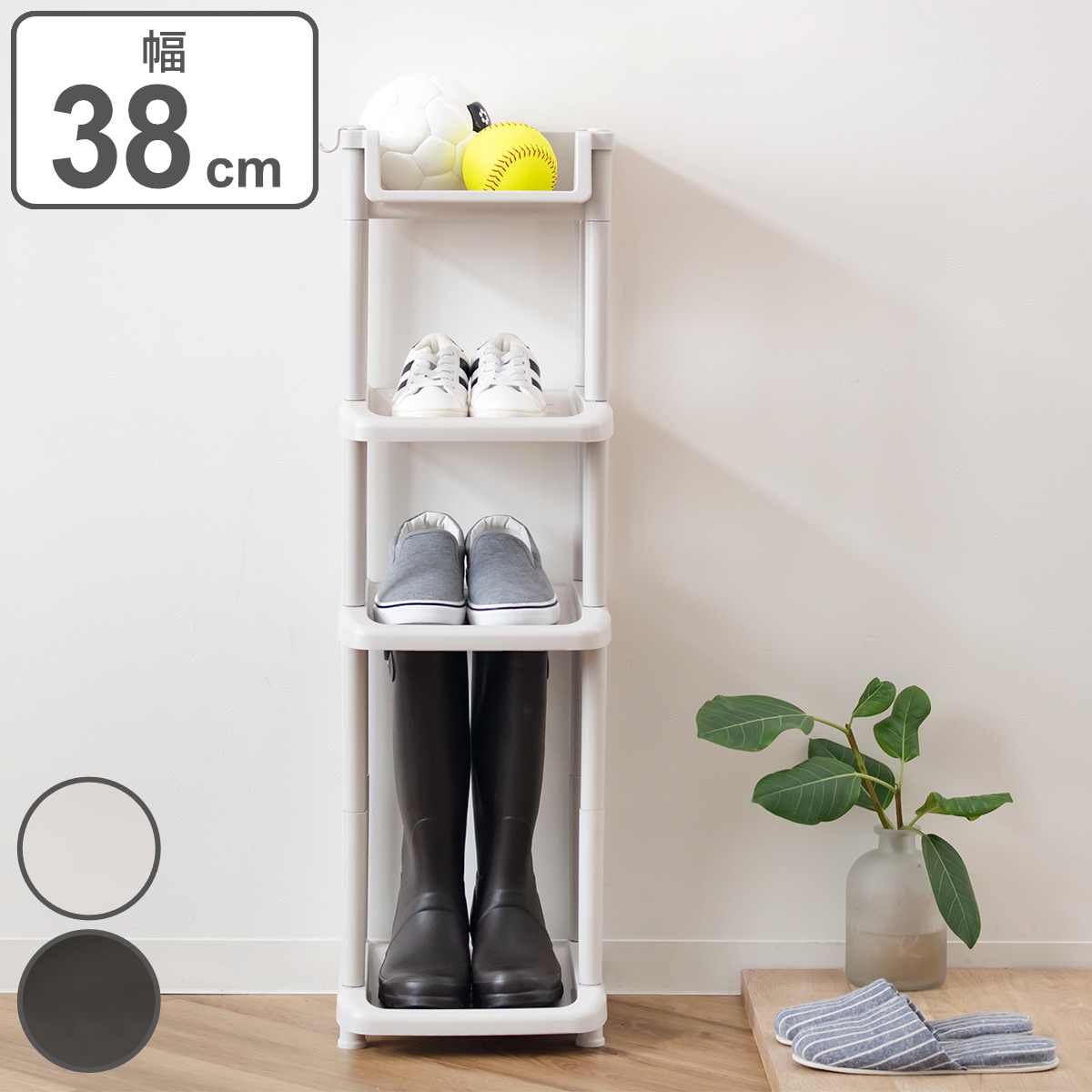 シューズラック 4段+トレー ( シューズスタンド トレイ付き 靴収納 玄関 下駄箱 靴 収納 ラック 傘立て スリム 幅38 簡単 組み立て )