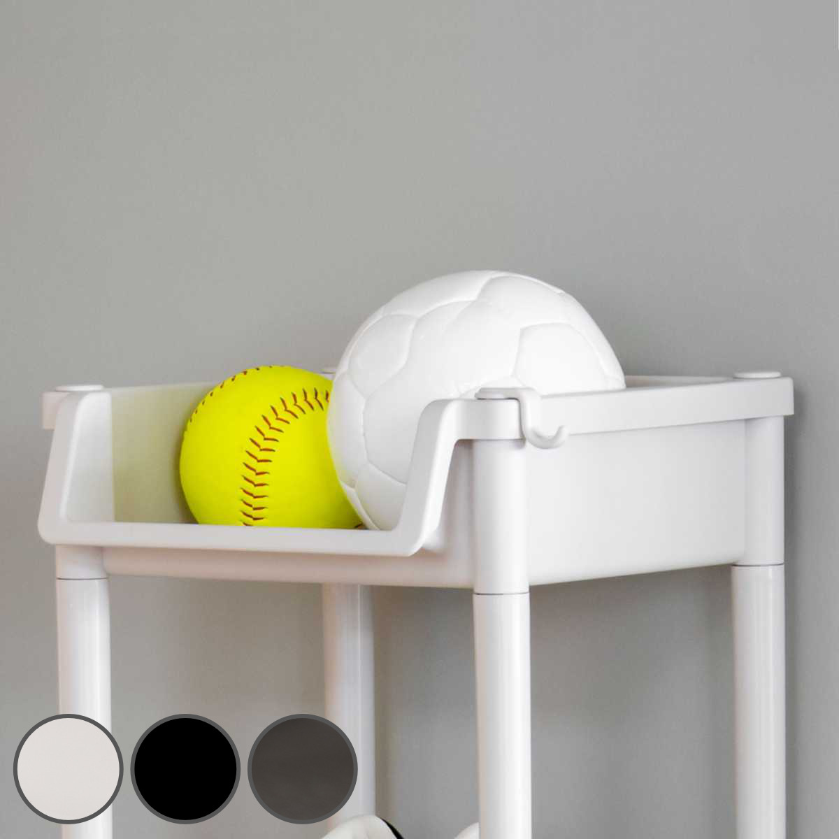 別売りのシューズラックに取り付けられる追加トレーです。置き場所に困りがちなボールやヘルメットをシューズラックと一緒にスッキリと収納することができます。